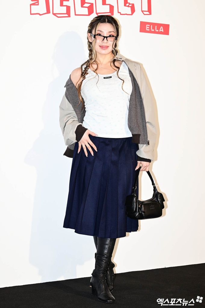 특히 두 갈래로 땋은 헤어와 고글형 안경, 롱부츠로 자신만의 개성을 드러내며 시크한 가을 감성을 완성했다. 리정은 포토월 앞에서 특유의 카리스마 있는 표정과 포즈로 시선을 사로잡았다.