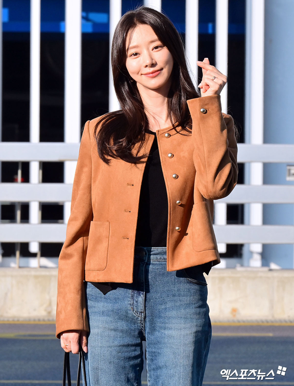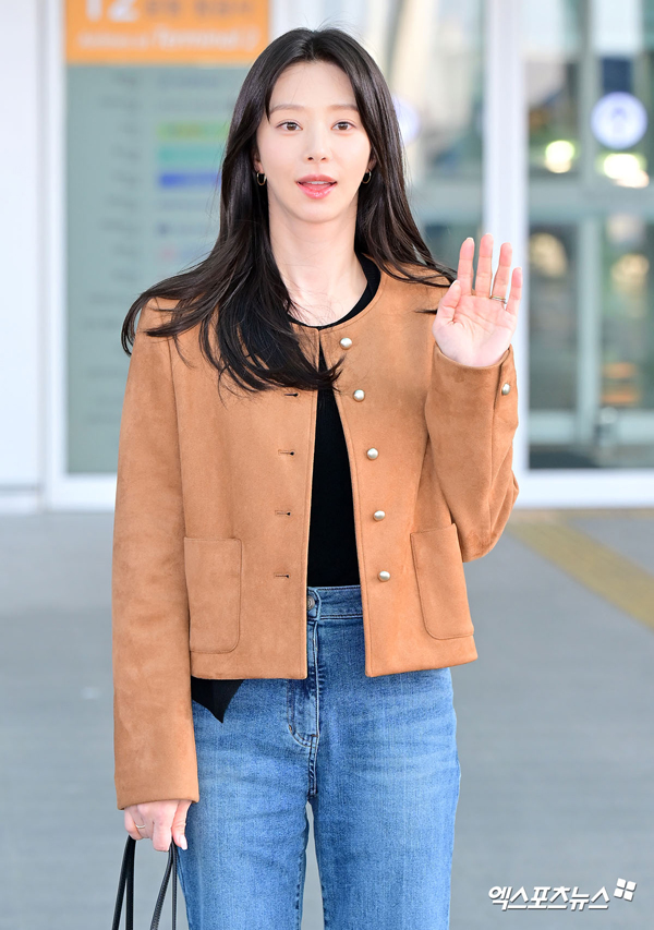 이날 이주빈은 브라운 컬러의 크롭 재킷에 블랙 이너 톱을 매치해 단정하면서도 세련된 스타일을 완성했다. 군더더기 없는 재킷 실루엣과 은은한 버튼 디테일은 클래식한 무드를 강조하며, 블루 톤의 와이드 데님 팬츠와 어우러져 편안하면서도 감각적인 공항 룩을 연출했다.